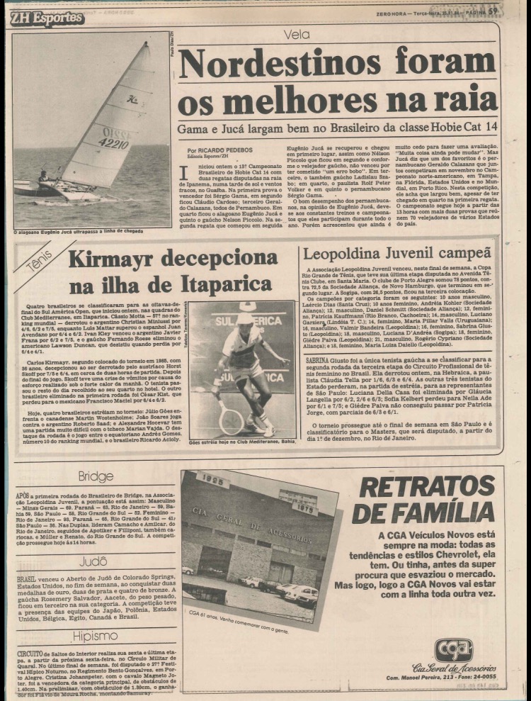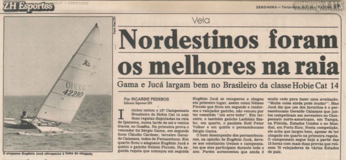 A década de oitenta foi particularmente fértil em termos de talentos na Classe Hobie Cat. Naqueles tempos, inclusive, aconteceu o primeiro campeonato mundial de Hobie Cat 14 aqui no Brasil, além de ter sido o boom dos festivais Hollywood Vela, época em que se começava a surgir no cenário nacional alguns jovens talentos, além daqueles já conhecidos do eixo Sul/Sudeste do Brasil.