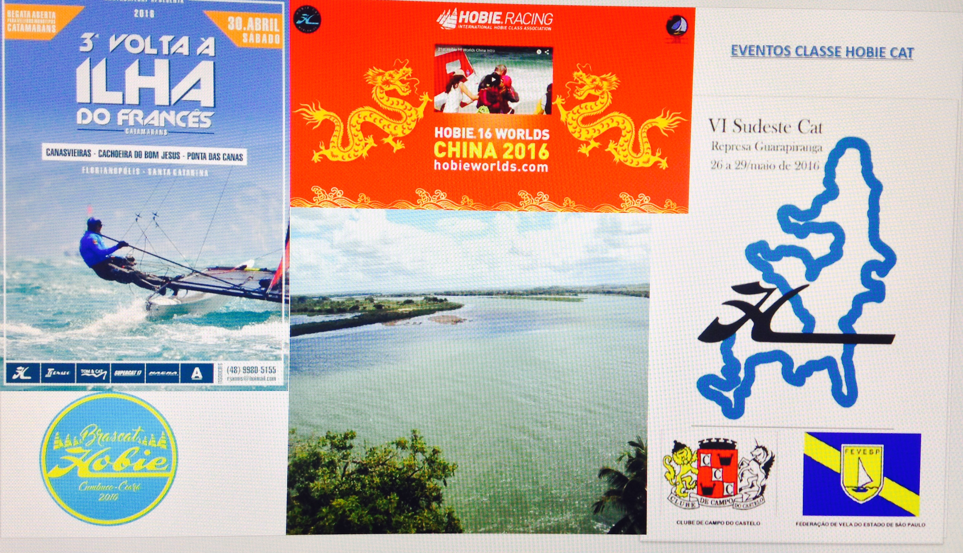 Em abril teremos dois eventos bem bacanas da classe no Brasil. O primeiro deles (21/24) será a TRIP “CATISTAS PELO VELHO CHICO”, uma odisseia pelo Rio São Francisco, promovida pela Flotilha de Hobie Cat 16 de Aracaju e que contará com a presença confirmada de velejadores dos Estados de Sergipe, Bahia, Pernambuco e Rio Grande do Sul. Serão percorridos aproximadamente 160 Km até a localidade de Pão de Açúcar, partindo da direção do litoral. No final do mês abril acontecerá na praia de Canasvieiras, Florianópolis, a 3ª VOLTA À ILHA DO FRANCÊS, um evento festivo que já tem espaço confirmado no calendário local. Em maio teremos na represa de Guarapiranga/SP, o Campeonato SUDESTECAT de Hobie Cat 14 e 16, colocando São Paulo (Capital) de volta ao calendário oficial de eventos da ABCHC. Também teremos no final de maio e começo de junho o CAMPEONATO MUNDIAL DE HOBIE CAT 16, na China, evento que contará com a presença de nada menos que quatro duplas do Brasil, marcando presença e mostrando a força da nossa classe nacional. Por fim, em final de outubro teremos o tão esperado encontro nacional, que acontecerá em Cumbuco, Estado do Ceará, que é o BRASCAT 2016, um evento que a Organização local e a ABCHC prometem deixar na história.