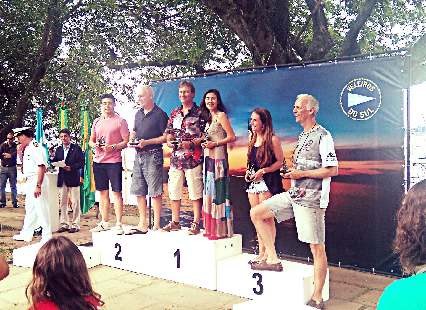 O barco fita azul foi o Hobie Cat 16 da dupla Mario Dubeux e Karol Bauermann (Jangadeiros – Ipanema Sports), seguidos da dupla Antônio Schneider e Dagoberto Cezimbra (Veleiros do Sul) e completando o pódio André Huyer e Michele Pandolfo (Veleiros do Sul). A flotilha toda está de parabéns por manter acesa a chama da classe Hobie Cat.