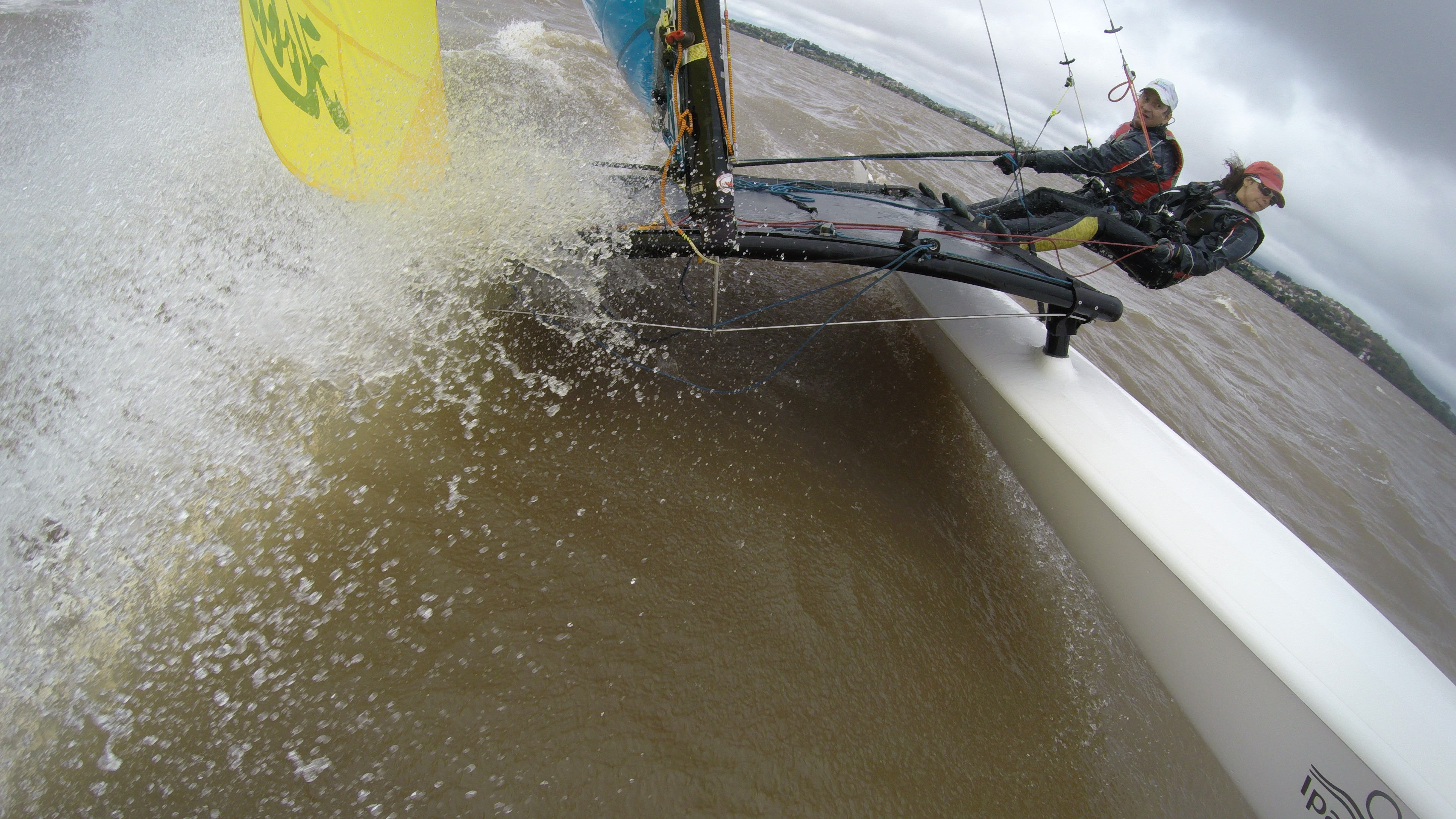 Foi realmente um campeonato com muitas variações nas condições climáticas em geral, especialmente no vento. No primeiro dia (05/09) o vento soprou forte vindo do quadrante do sul/sudeste, com rajadas que ultrapassavam fácil os 22 nós. Dos dezesseis que começaram as regatas do dia terminaram apenas sete. Muitas viradas e capotadas e emoção para dar e vender.
