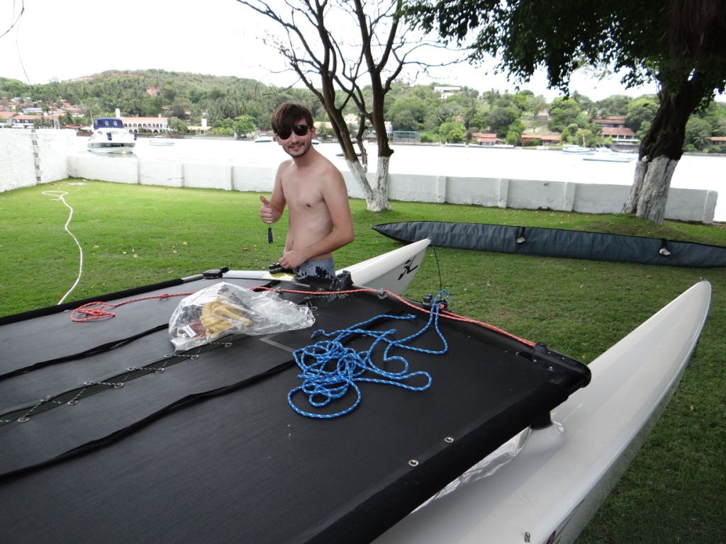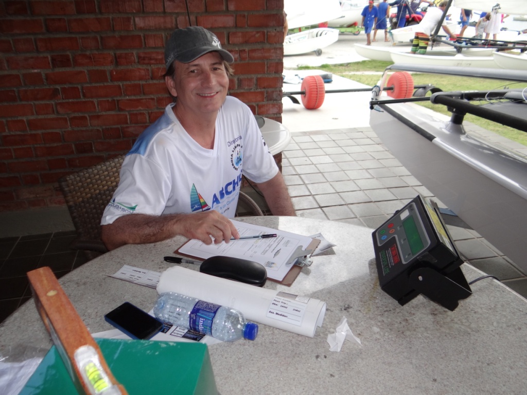 Hoje, como em Recife cinco horas da matina já tem sol a pique, o dia começou cedo com preparativos, medição, pesagem e muito bate papo. Ao mesmo tempo em que acontecia a medição, os votos para escolher os gestores da ABCHC (biênio 2015/2016) eram depositados na urna oficial, propositadamente verde, que é a cor da esperança. Tudo ocorreu num clima de bastante amizade e cordialidade. Afinal, independentemente de chapa 1 ou 2, todos querem a mesma coisa, que é exatamente a manutenção da amizade e o paulatino crescimento do Hobie Cat no Brasil. Com certeza a chapa que sair vitoriosa contará com o apoio de toda a família Hobie.
