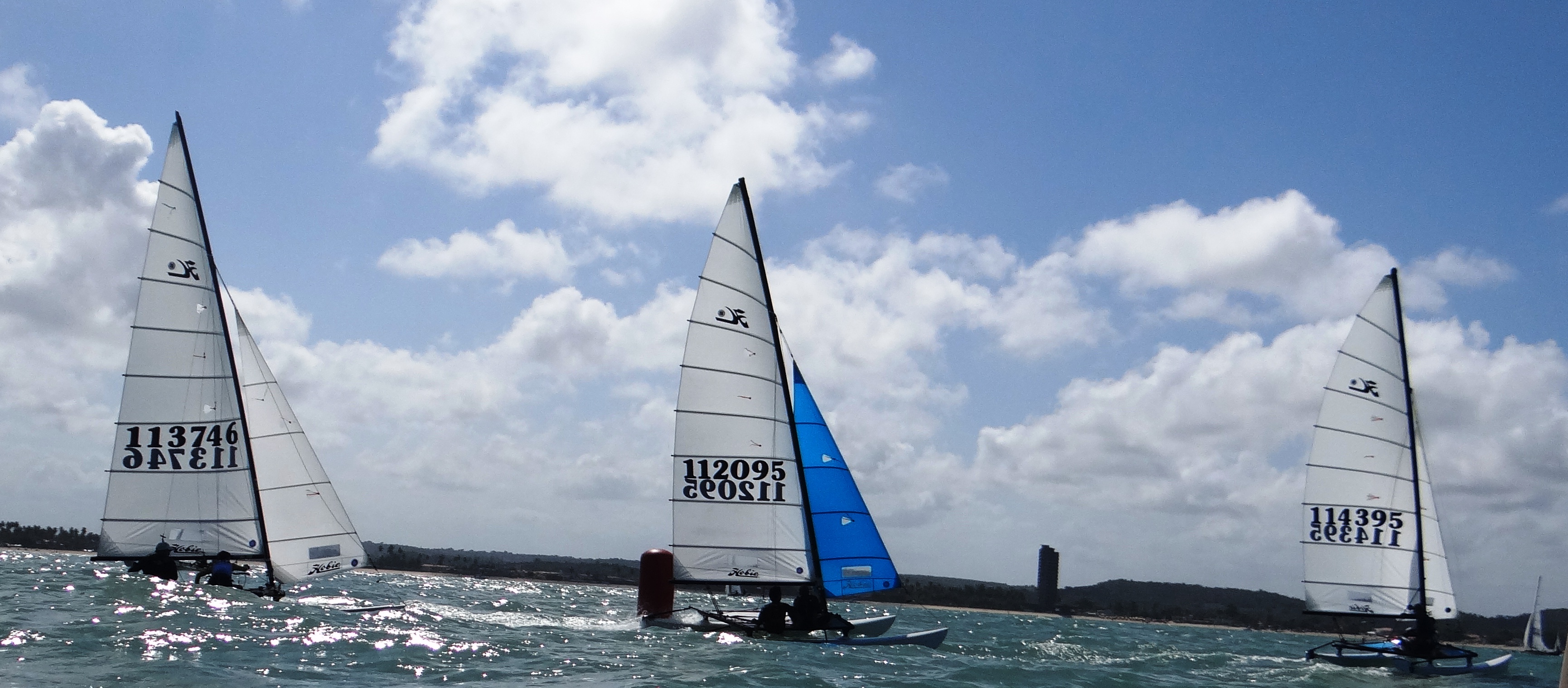 O III Campeonato Sulamericano de Hobie Cat 16, evento que está acontecendo em Maria Farinha, litoral norte de Pernambuco, está muito bom. Várias duplas estão na disputa e os representantes dos países participantes quebrando a cabeça para conseguir uma das três vagas disponíveis para os jogos panamericanos de 2015, no Canadá. Por enquanto estão se classificando México, Brasil e Venezuela, mas nada está definido. Amanhã, último dia do certame, teremos mais duas regatas.