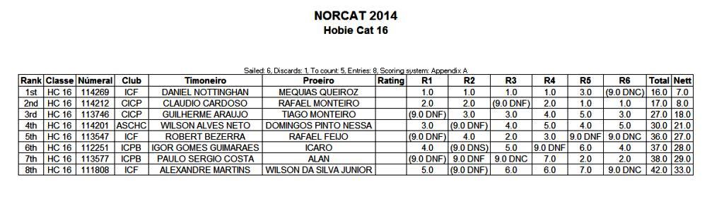 Ao final, Daniel Nottingham e Mequias Queiroz/CE, mais acostumados com esse tipo de condição na ventosa Fortaleza, e também por merecimento, saíram vencedores na categoria HC 16. Já na categoria HC 14 o vencedor foi o velejador Fábio Espinar/PB.