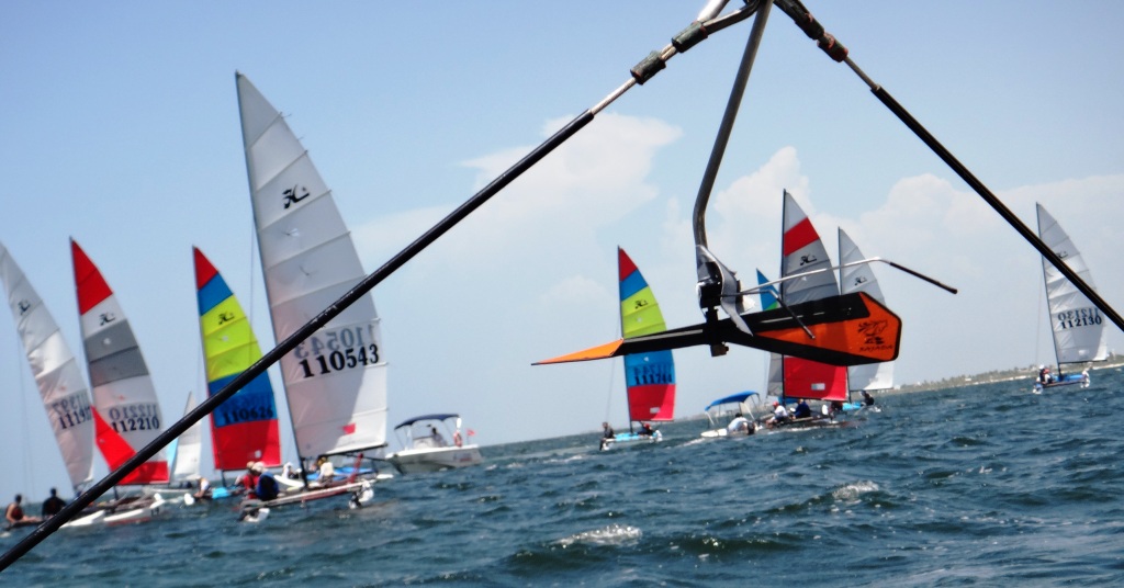 E numa palavra que se pode traduzir o espírito desta COPA. Reunindo grandes velejadores do México, Venezuela, Guatemala, Brasil, França (atuais campeões mundiais) e Alemanha, o evento já acontece na sua 15ª edição. Este ano o certame mudou de local, passando para uma praia distante 25 Km de Progreso, exatamente onde seria o mundial da classe de 2004, não fosse o furacão que visitou o local dois anos antes. Um lugar de veraneio, paradisíaco, que conta com um clube de vela praiano, simpático e exclusivamente dedicado a veleiros catamaram. Uma coisa que se nota é a renovação. Antes da COPA CUMMINS principal, aconteceu a MINI COPA CUMMINS, com crianças de 05 a 15 anos, divididas em categoria, como acontece com o optmist no Brasil. Eram quase 100 crianças, futuros potenciais campeões catistas. Utilizam o HOBIE WAVE. E a solução para a renovação da classe no Brasil. Esperamos poder contar com a fábrica Hobie Cat para mudar a realidade do nosso País. Ter o Wave no Brasil é a solução. O Alan Friemann, nosso atual dealer, já sabe disso e está disposto a nos ajudar. Assim como o Presidente da ABCHC.