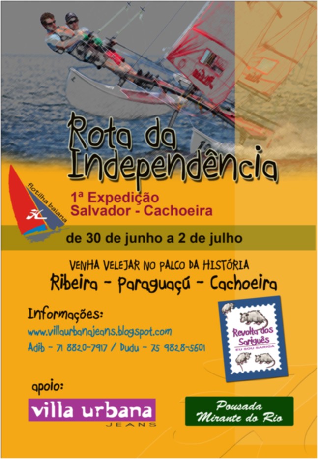 Bem no início de julho de 2012, inspirados, na idéia do então capitão da flotilha baiana de hobie cat, Anselmo Costa , e no exemplo de Beto Pandianni ( que liderou a expedição Miami-Rio de Janeiro em 2 barcos HC 21), eu Adib Salloum e Ricardo Andrade resolvemos por em prática e realizar uma expedição, que saiu da praia da Ribeira(Salvador-Bahia Brasil), atravessou a baía de Todos os Santos, e subiu o Rio Paraguaçu, cenário de uma beleza Natural ímpar, até alcançar a histórica cidade de cachoeira. O Percurso foi de de 73 km, medidos em GPS, e devido ao feriado, da independencia da Bahia, e por ser exatamente a rota inversa das tropas libertadoras do jugo Português, foi batizado de ROTA DA INDEPENDENCIA DA BAHIA.