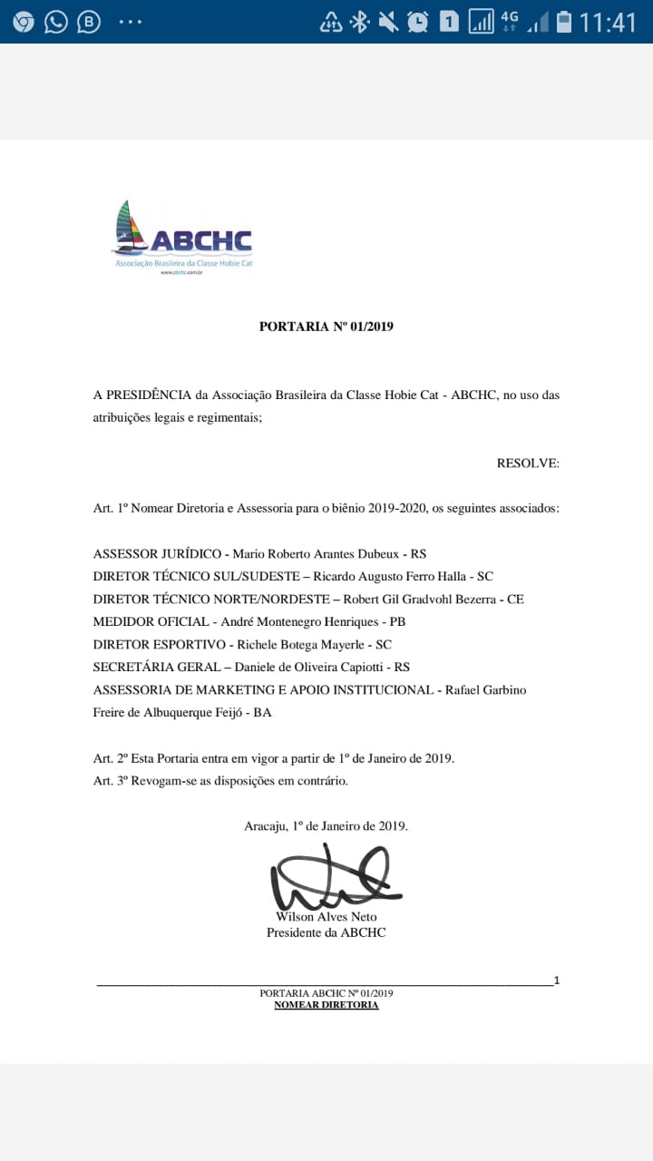 Agradeço a todos pelo voto de confiança e aos presidentes passados pela dedicação e trabalho na organização da associação que nos ajuda a brincar de hobie cat.