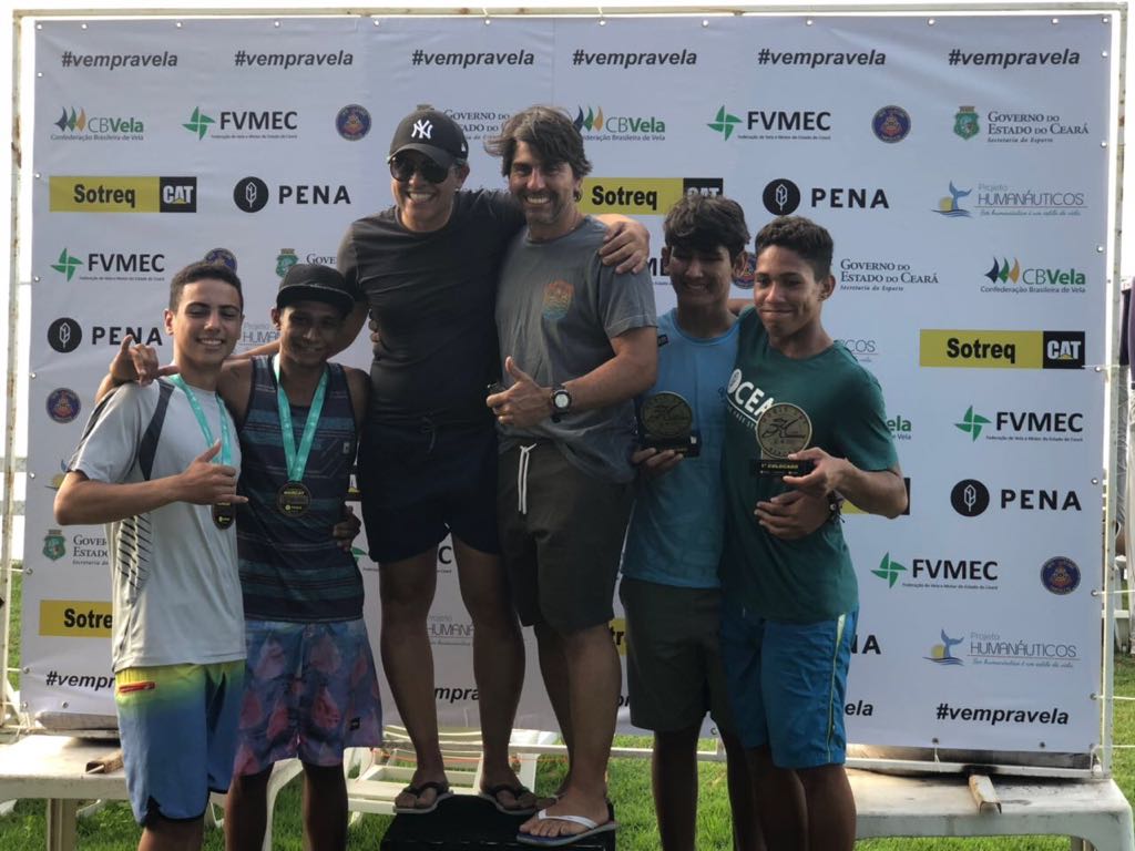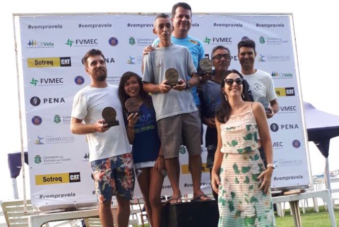 NORCAT. Inspirada no último Brascat realizado em POA, a Flotilha Cearense de Hobie Cat promoveu, entre os dias 30 de março e 01 de abril/2018, o 40º Campeonato Norte-Nordeste de Hobie Cat, um evento que teve como principal característica o "Hobie Way of Life" - Estilo de Vida que inspira aventura, família, amizade, velejo e confraternização. A condição de vento variou nos três dias de regata, aumentando gradativamente de intensidade a cada dia, tornando esta edição uma das mais acirradas dos últimos anos. Os 14 participantes se revezaram nas primeiras posições inúmeras vezes e no domingo de páscoa, último dia de regatas, seis duplas disputavam o lugar mais alto do pódio, com diferença mínima de pontos entre elas. Robert Bezerra e Gilberto Felix (CE) venceram as duas últimas regatas do evento e garantiram o Hexacampeonato, superando as duplas Igor Guimarães e Ronaldo Barroca (PB) e Daniel Nottingham e Sculi Emile (CE), que terminaram na segunda e terceira colocação do certame principal. Na categoria Master, a dupla campeã foi Guilherme Araújo e Ednna Melo (PE), enquanto que Alexandre Martins e Douglas Enrique (CE) consagraram-se campeões na categoria Gran Master. Fábio Espinar e Manolo Espinar (PB) venceram na categoria Estreante, mostrando que a classe Hobie Cat 14 é uma excelente escola para a Hc16. Já na categoria Jovem, brilharam na raia a dupla Wesley Sousa e Gabriel Regis (CE), ambos velejadores da Equipe Pena/Humanáuticos de Vela Jovem e bolsistas do Programa Ceará Atleta do Governo do Estado do Ceará, superando as duplas Rafael Feijó e Clara Berenger (BA) e Ícaro Carneiro e Wilson Júnior (CE), segundo e terceiro colocados, respectivamente. Na categoria Dinocat a dupla Carlos Pires e “Guila” Araújo (PE) mostrou muita competência, vencendo muitas regatas dos barcos importados. O principal evento da classe na região Nordeste conseguiu reunir 28 competidores com idades entre 14 e 65 anos, além de 7 competidores do sexo feminino, fato histórico para a vela nordestina. Outro ponto extremamente positivo foram as parcerias realizadas com o Ceará SUP Clube, Coletivo Humanáuticos e Pena, que proporcionaram uma ação pioneira na classe, proporcionando a apoiadores e convidados a experiência de participar de uma regata formando dupla com os experientes competidores do campeonato. Nesta regata promocional, sagrou-se campeão o convidado João Guedes (França), deixando Milena Araújo (PE), Cláudia Casas (CE) e Glauber (CE), em segundo, terceiro e quarto colocados, respectivamente. Vale ressaltar ainda que estiveram presentes nesta edição do Norcat representantes dos Estados da Bahia, Ceará, Paraíba, Pernambuco e Sergipe. O evento foi promovido pela Flotilha de Hobie Cat do Estado do Ceará, Federação de Vela e Motor do Estado do Ceará e Iate Clube de Fortaleza, sendo ainda apoiado pelo Governo do Estado do Ceará (através da Secretaria de Esporte), Coletivo Humanáuticos, Confederação Brasileira de Vela, SotreqCat (revendedor oficial da marca Caterpillar na região), Pena (marca de roupas e acessórios com o mesmo espírito Hobie Way of Life).