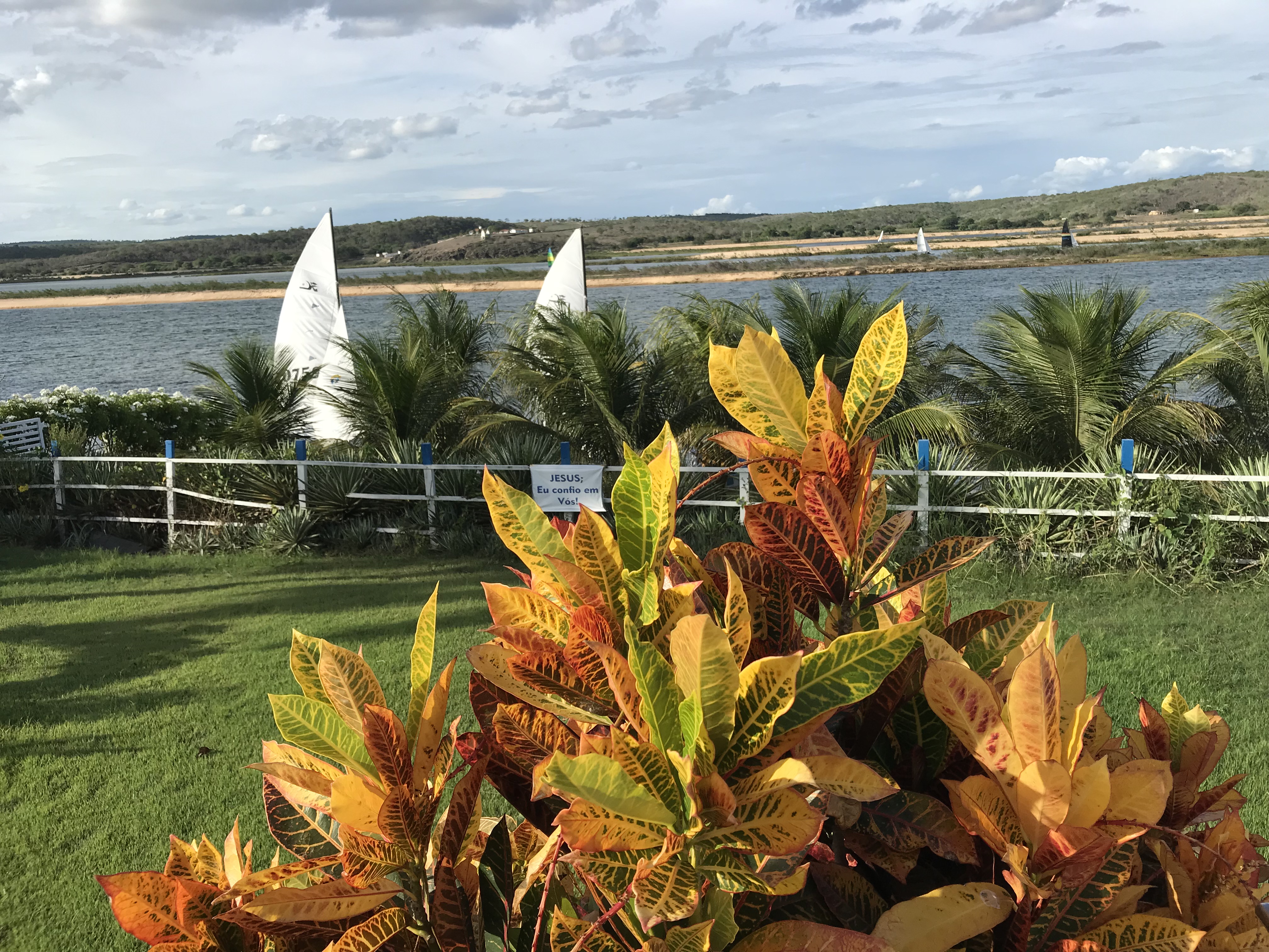 Acordamos cedo e tomamos nosso café com o visual do Velho Chico, na lanchonete extensão da pousada Chega Mais, simpática atitude dos proprietários do nosso já confirmado ponto de pouso em Propriá. Logo que entrou um ventinho partimos para nossa segunda etapa da TRIP, isso ali por volta das 9:15hs. E não é que o Deus Éolo (guardião dos ventos) mais uma vez não nos deixou na mão. Na primeira etapa do percurso Tito e Ricardo que estavam na frente da flotilha, seguidos por Guilherme e Nicole (nenhum deles conhecia o caminho) nos levaram para um labirinto e começaram a voltar, o que fez com que todos que vinham atrás dessem meia volta num contravento apertado, só que eles nos enganaram. Quando me dei por conta e olhei de soslaio os dois espertinhos da frente deram um bordo redondo e seguiram pelo caminho supostamente errado. Outros nos seguiram. Enfim, todos os caminhos levam a Roma, só que alguns são mais complicados. Perdemos uma meia hora e ficamos para trás e velejados com o objetivo de diminuir a distância, com um vento fraquinho. Na segunda etapa do percurso o vento apertou um pouco mais e ficou muito bom, até que ancoramos em frente da Traipu/AL para saborear um delicioso carreteiro preparado pelo Fadanelli e equipe de apoio. Pense numa coisa boa. Ou terá sido a fome!?!? Que nada, o cara é campeão. De lá nos largamos para Gararu/SE onde seria nosso terceiro pernoite (Chácara Paraíso Gararu). Como já conhecíamos o caminho viemos Eu e Victor e mais Wilsinho e Ledo pela esquerda de um enorme banco de areia e os espertos que tentavam nos passar foram pela direita. Se lascaram. Dessa vez eles ficaram entalados. Mas tudo é festa. Logo na saída de Traipu entrou uma rajada de uns cinco minutos muito forte e vi a hora de capotar. Foi pericia para segurar o desembestado Hobie Cat. Como somos uns The flash ´s chegamos na frente na pousada em Gararu e logo subimos nosso barco no gramado e ficamos esperando os paturebas de plantão que derem uma de “espertos” e ficaram encalhados do outro lado da ilha, desviando de um bando de cavalos que pastavam entre as ilhotas. Todos em terra fomos recepcionados por um autêntico forrozinho pé de serra simpaticamente providenciado pela administração da Pousada onde passamos a noite. Lugar bacana, apartamentos organizados, e um bom ambiente de confraternização. Aliás, a noite foi regata a churrasco gaúcho, obra da dupla Fadanelli e Hernani, e uma farofa que caiu como uma luva, providenciada pela mulherada da bike. Aqui um parêntese: O sistema olfativo tem características únicas. O fato é que o cheiro exerce um papel fundamental nos processos de interação sócio afetiva entre seres humanos. E eu tenho lindas memorias afetivas e infantis relacionadas com o odor de bosta de gado. E nossa pousada tinha esse cheirinho e fazenda. No dia seguinte Victor me chamou atenção para o curral que existia logo atrás. Coisa maravilhosa. Pense num aroma para me dar Déjà Vu. Dormimos bem, ao menos até que o “primo” Tito começou com a sua sinfonia noturna. Aguentei um tempo pra não dizerem que sou chato mas dai não deu mais e fui devagarzinho na orelha dele e o chamei bem carinhosamente. Hahahahahha O cara abriu os olhos sem saber onde estava, assustado com aquele homem com a barba perto do cangote...Funcionou! Dali em diante dormiu sem roncar... Ou então não dormiu mais ...