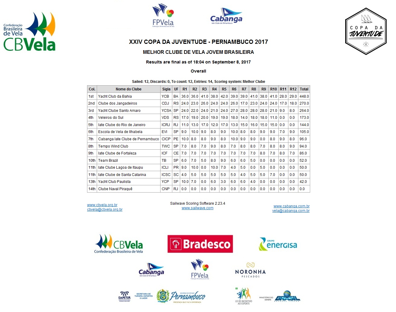 A Copa da Juventude foi um sucesso. Confira os resultados dos Clubes que estão investindo na vela jovem.